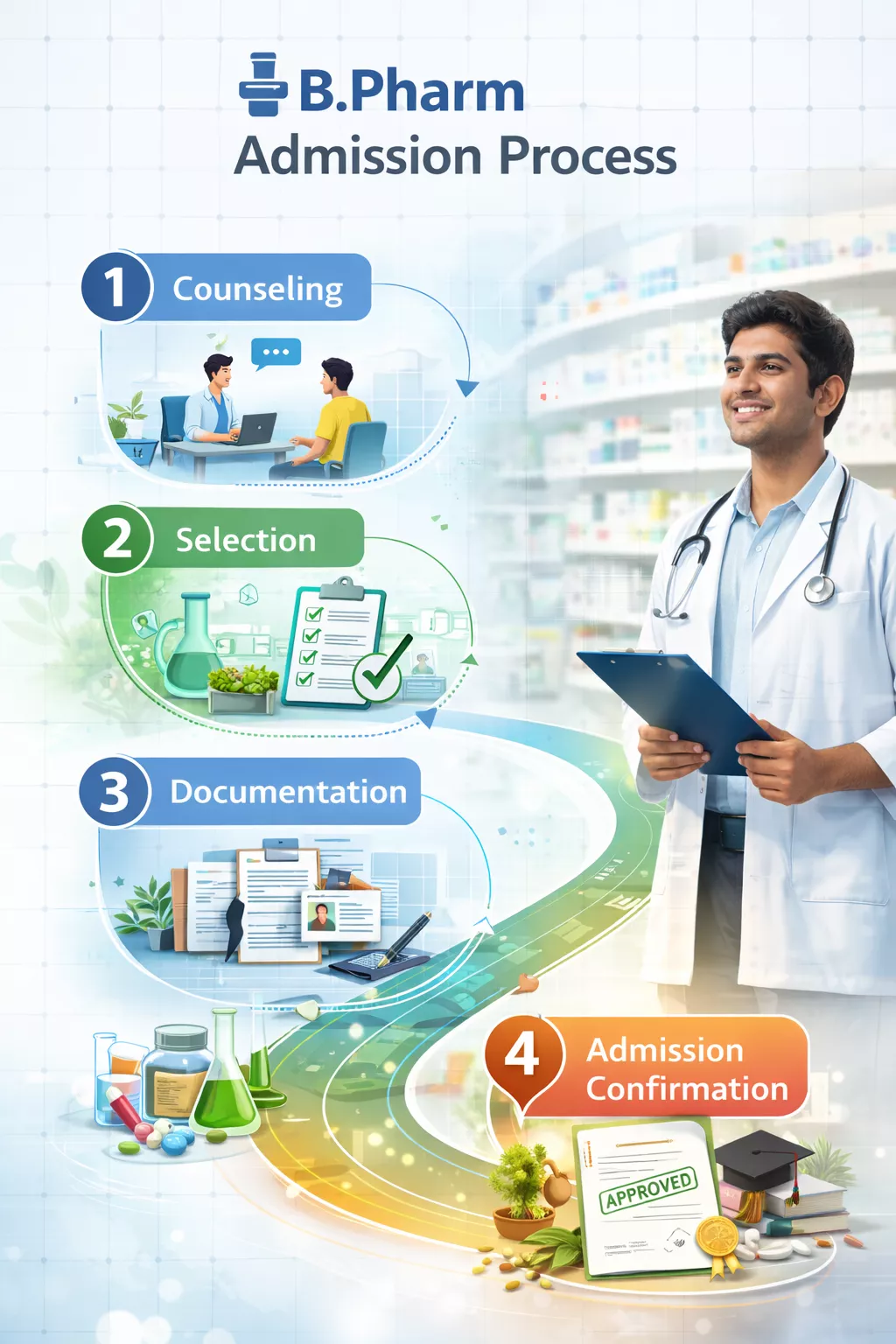 Complete fee payment and confirm your B.Pharm admission.