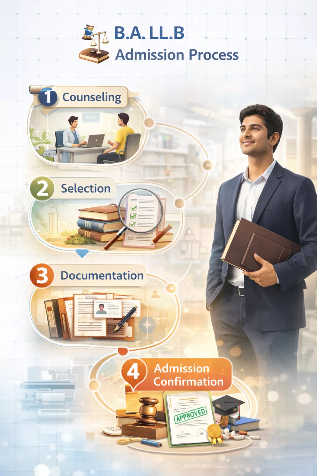 BA LLB is an integrated undergraduate law program that combines arts subjects with legal education. The course provides comprehensive knowledge of legal principles, constitutional law, and practical legal skills required for careers in the legal profession.