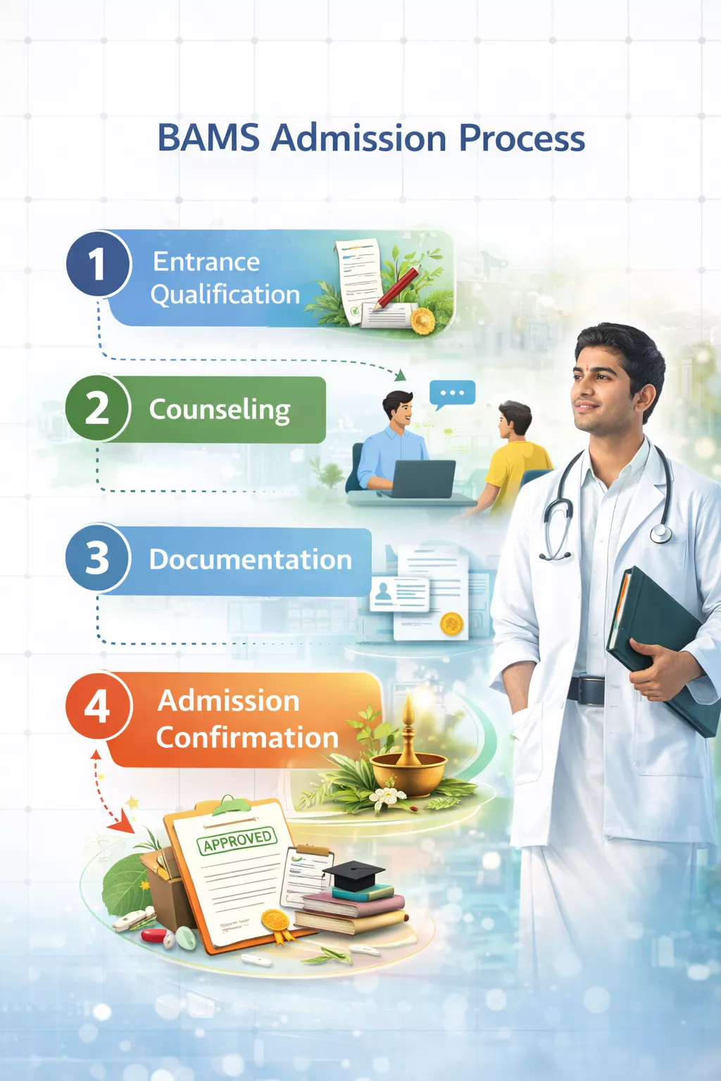 Complete counseling, fee payment, and confirm BAMS admission.